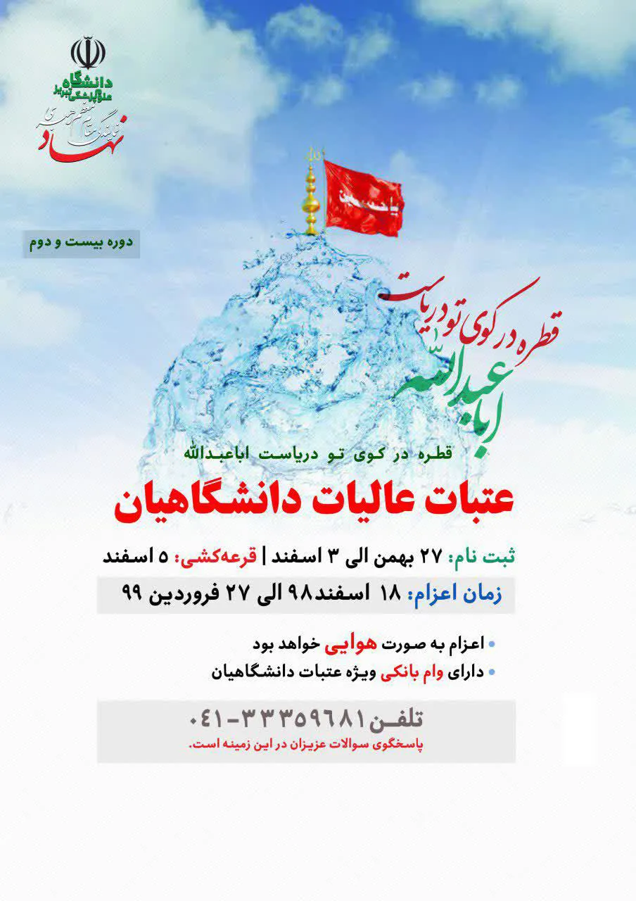 ثبت نام بیست و دومین دوره عتبات دانشگاهیان تا 3 اسفند ادامه دارد