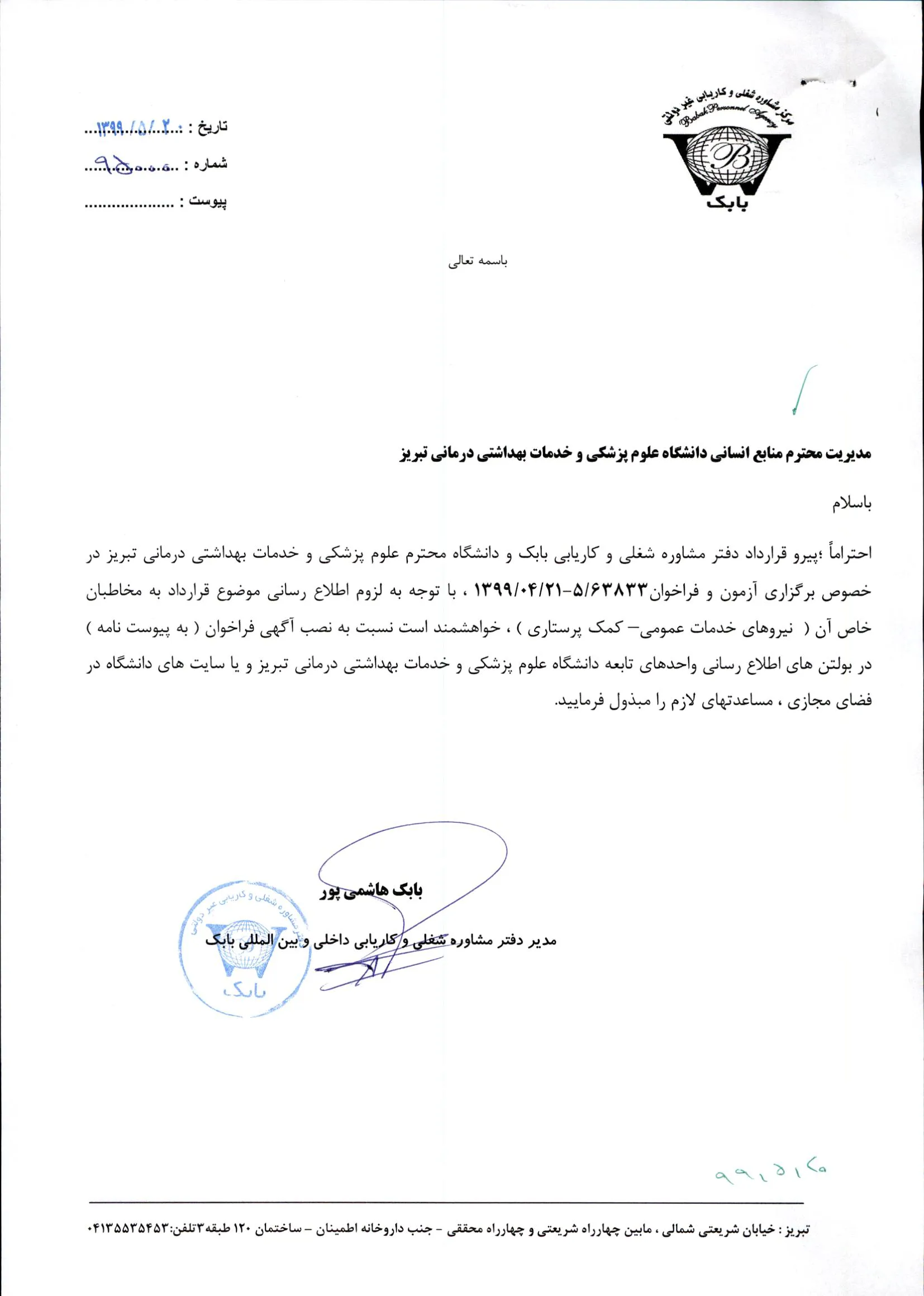 بیمارستان امام حسین (ع) هشترود در نظر دارد نیروی شرکتی طبق شرایط پیوستی جهت کار در بیمارستان نیرو جذب کند