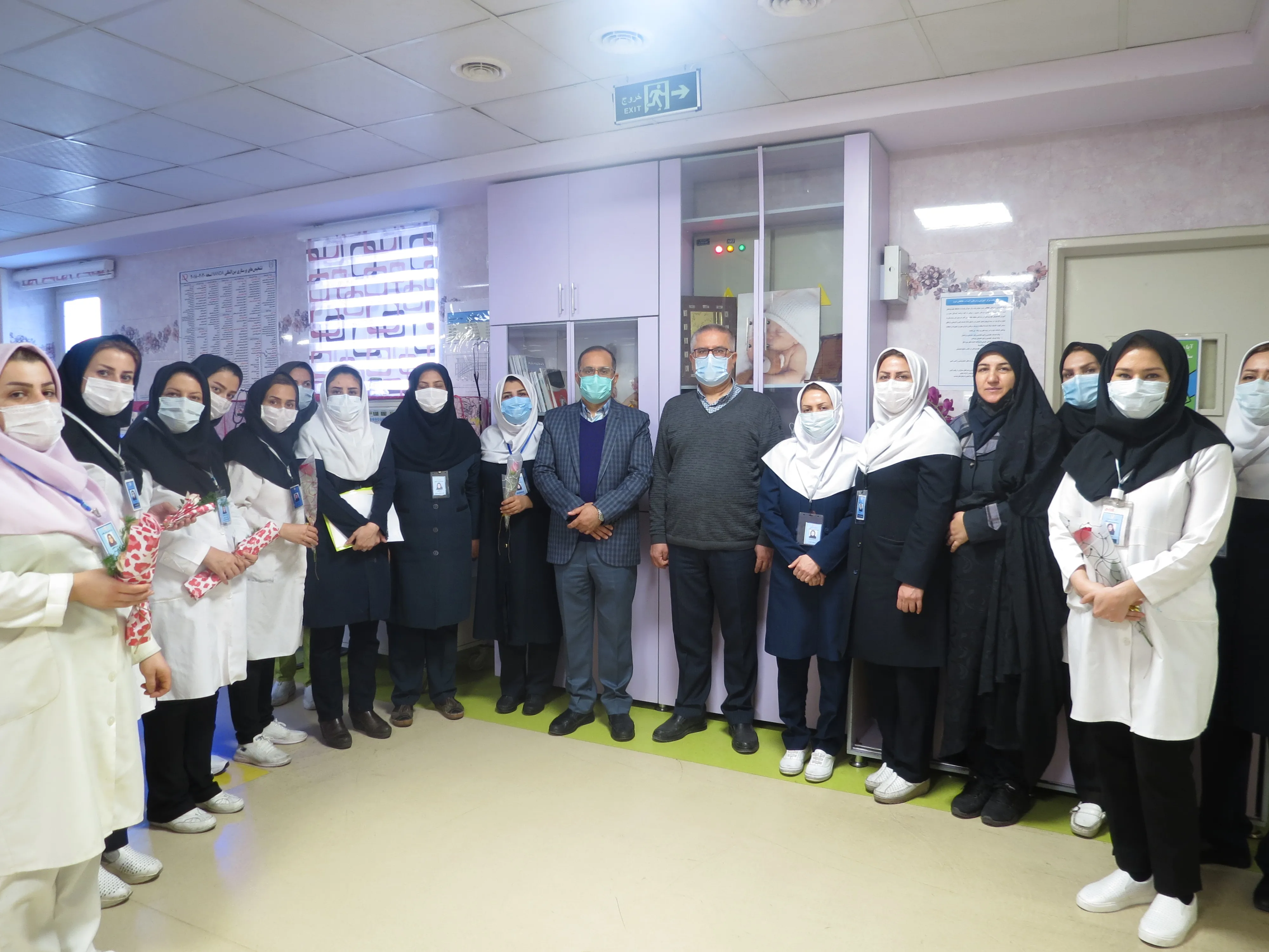 آقای دکتررضائی ریاست محترم مرکز باهمراهی مدیر مرکز آقای دکتراسلامی ومترون محترم دربخشهای مرکز حضوریافتند وازپرستاران با تقدیم گل وشیرینی تقدیر وتشکرنمودند.
