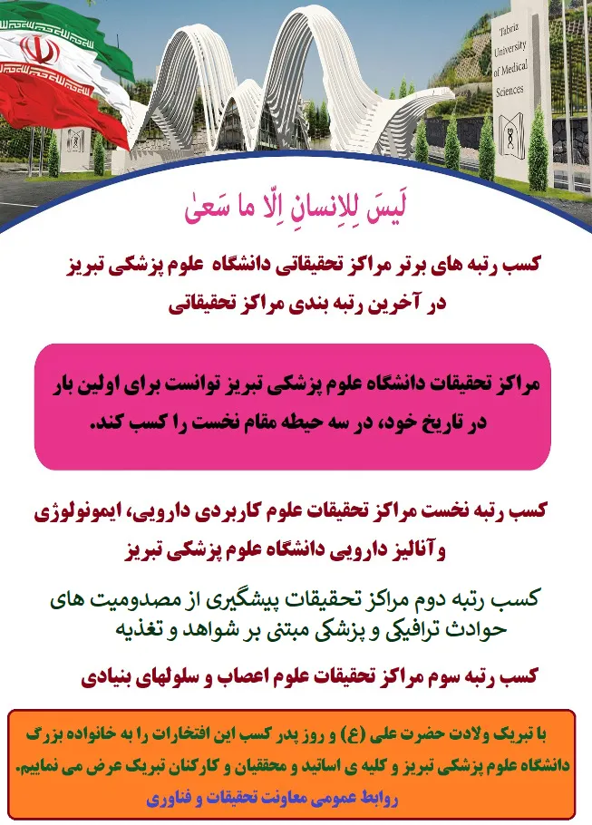 معاون تحقیقات و فناوری دانشگاه علوم پزشکی تبریز خبر داد