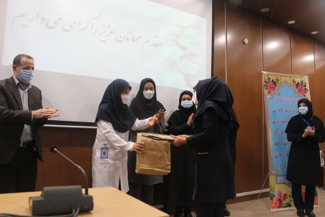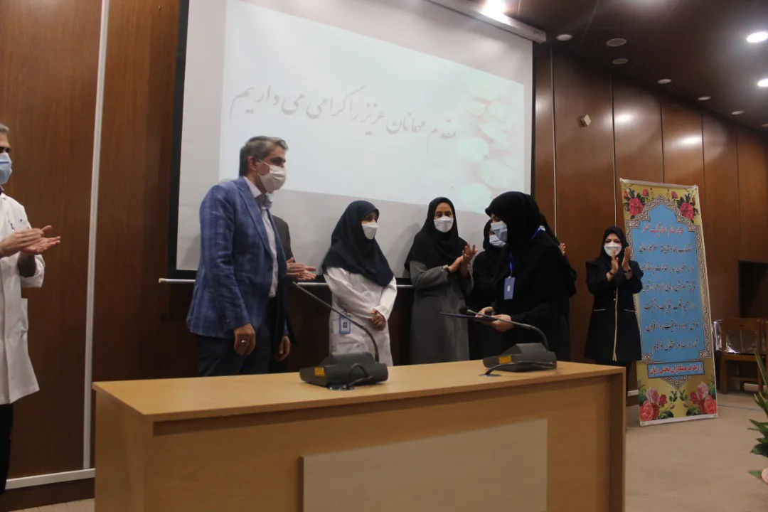 در ادامه دکتر احمدیان معاون درمان و یوسف اشرفی مدیر پرستاری دانشگاه ضمن تقدیر از خدمات ارزشمند خ کریمی برای خانم نیک محضر از درگاه خداوند منان موفقیت مسئلت نمودند.