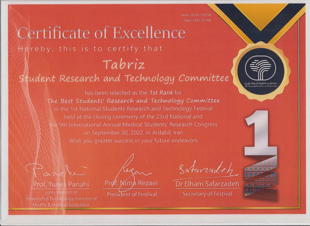 کسب مقام اول کشوری توسط کمیته تحقیقات دانشجویی دانشگاه علوم پزشکی تبریز