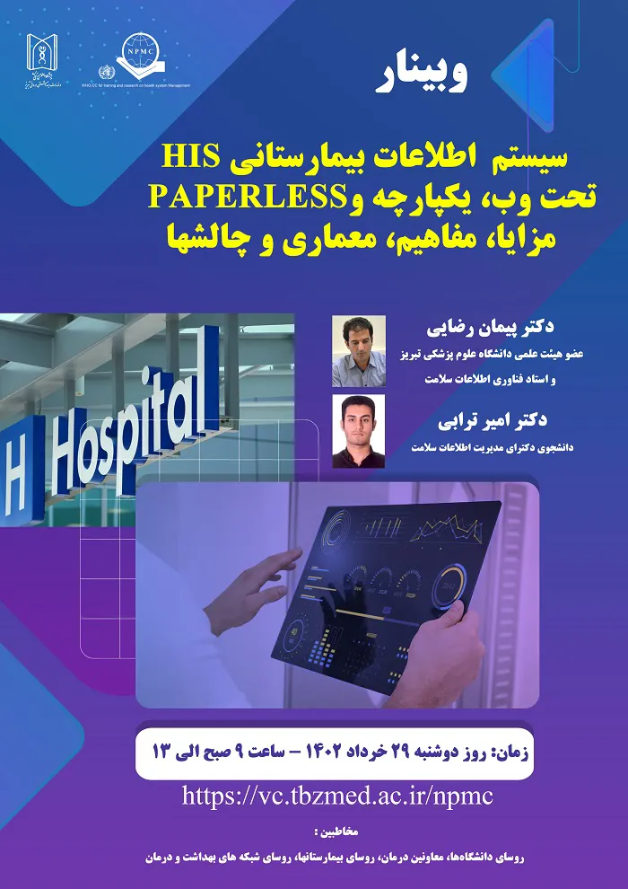 وبینار «سیستم اطلاعات بیمارستانی HIS تحت وب، یکپارچه وPAPERLESS ، مزایا، مفاهیم، معماری و چالشها» در دانشگاه علوم پزشکی دانشگاه علوم پزشکی تبریز برگزار می شود