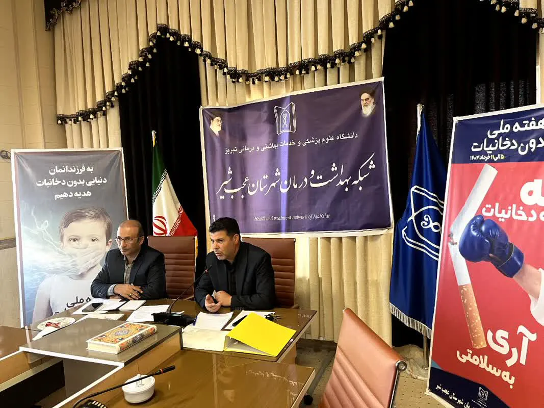 کمیته برون بخشی وهماهنگی اجرای برنامه های هفته ملی مبارزه با دخانیات با حضور مدیر شبکه بهداشت ودرمان شهرستان عجبشیر، معاون بهداشتی، ریاست ادارات تبلیغات اسلامی، تعزیرات حکومتی،صمت،کانون فکری کودکان،اتاق اصناف ، کارشناسان فرمانداری ، شهرداری عجبشیر وجوانقلعه ، اموزش وپرورش ،کارشناسان بسیج ناحیه سپاه و پادگان ۰۳ وجمعی از کارشناسان شبکه در سالن اجتماعات شبکه بهداشت ودرمان برگزار گردید.