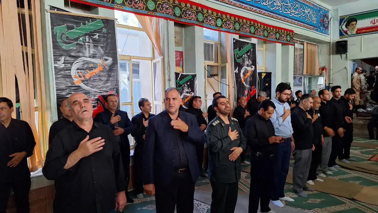 حضور مدیریت وجمعی از پرسنل شبکه بهداشت ودرمان در مراسم زیارت عاشورا و عزاداری سیدالشهدا در محل سپاه ناحیه عجبشیر