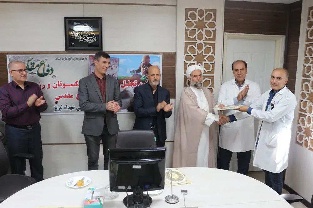 به مناسبت گرامیداشت هفته دفاع مقدس و ارج نهادن به فرهنگ والای ایثار، مراسم تجلیل از همکاران جانباز، رزمنده و ایثارگر از ساعت ۸ صبح روز چهارشنبه ۴ مهرماه ۱۴۰۳ در محل حوزه ریاست مرکز آموزشی درمانی شهدا تبریز برگزار گردید.