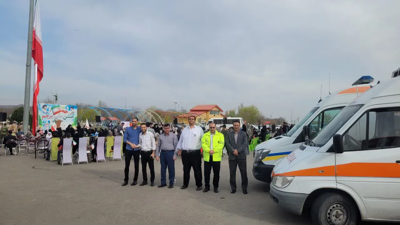 به مناسبت گرامیداشت روز ۱۲ فروردین روز جمهوری اسلامی ایران و روز جشن پرچم در حاشیه مراسم ، ایستگاه پایش سلامت با هماهنگی وتدابیر مدیر شبکه بهداشت و درمان با حضور معاون بهداشتی ومسئول اورژانس ۱۱۵ ومراقب سلامت و همکاری ریاست وپرسنل محترم هلال احمر شهرستان در محل برگزاری مراسم مستقر گردیده و به انجام مراقبت های مربوط به سلامت و اندازه گیری فشار خون و سایر مراقبت های بهداشتی مراجعین وپخش تراکت وپمفلت با محتوای بهداشتی جهت ارتقا آگاهی های بهداشتی وسلامتی مراجعین در مراسم انجام گرفت.