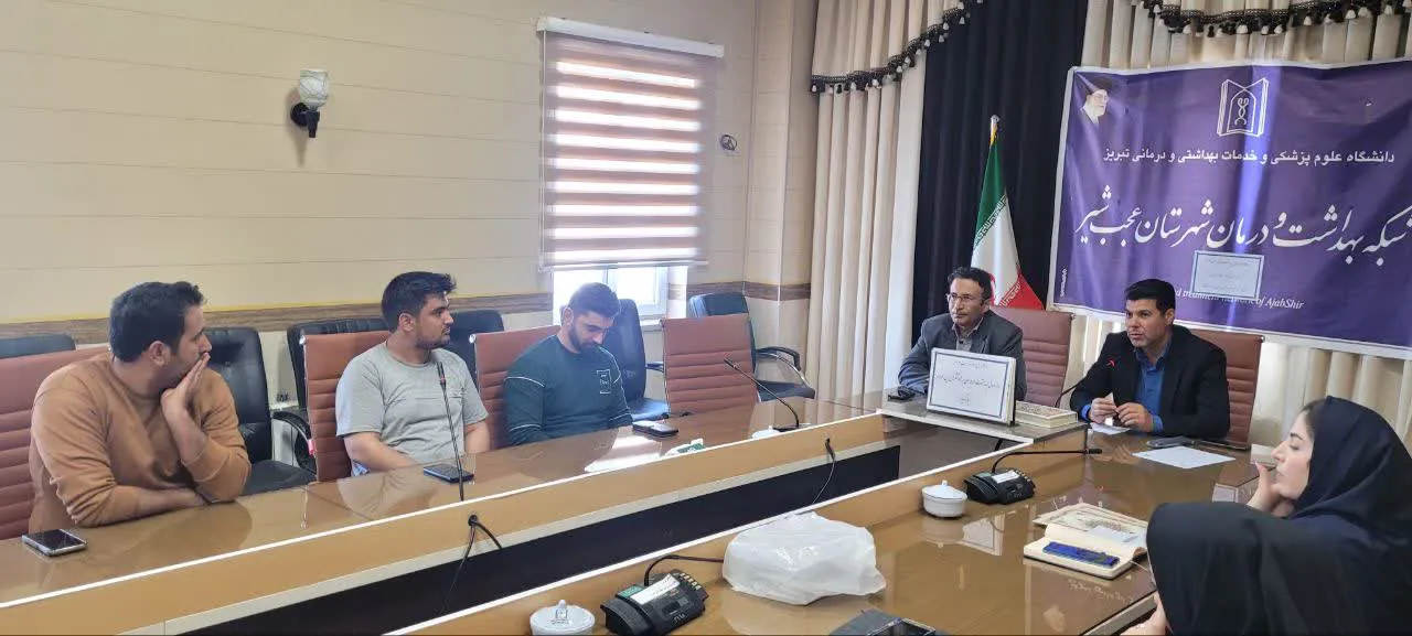 جلسه هماهنگی وتقدیر از فعالان حوزه سلامت شغلی در سالن اجتماعات شبکه بهداشت ودرمان شهرستان عجبشیر با حضور مدیر شبکه بهداشت ودرمان، معاون بهداشتی وجمعی از پرسنل واحد مهندسی بهداشت حرفه ایی بخش خصوصی برگزار گردید.