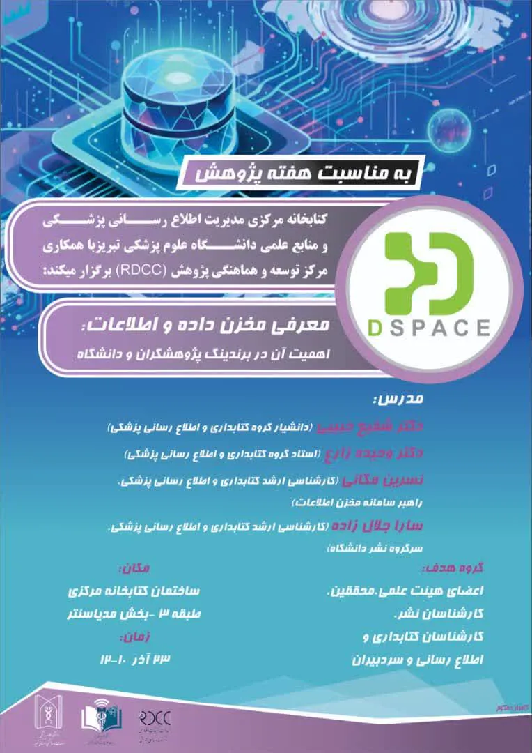 مدیریت اطلاعرسانی پزشکی و منابع علمی دانشگاه علوم پزشکی تبریز، به مناسبت هفته پژوهش، مجموعهای از کارگاهها و وبینارهای تخصصی را برگزار میکند.