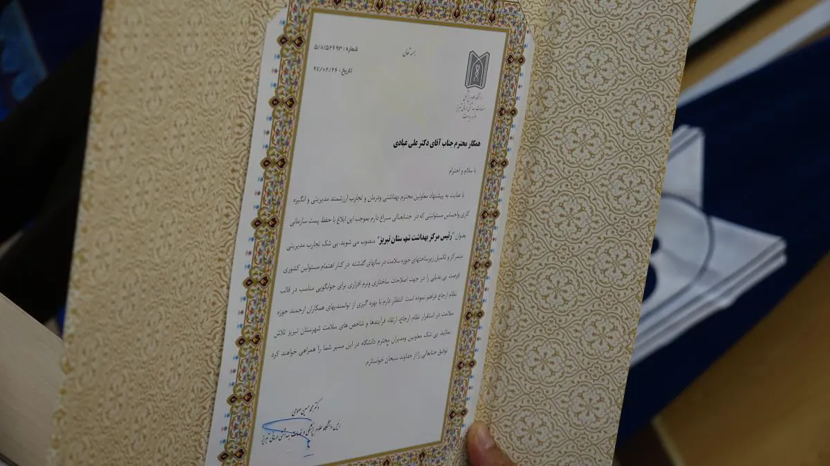 در آئین تودیع ومعارفه روسای قبلی و جدید مرکز بهداشت شهرستان تبریز ضمن تحویل ابلاغ ریاست مرکز بهداشت شهرستان تبریز به دکتر علی عبادی با اهدای لوح سپاس و هدایایی از خدمات و تلاشهای چندین ساله ی دکتر خسروشاهی قدردانی شد .