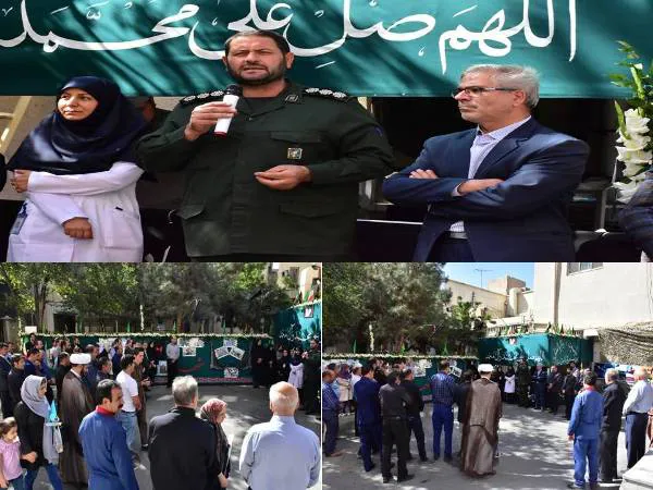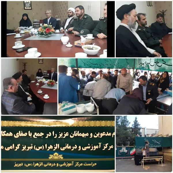 در راستای رهنمودهای ارزنده امام شهیدان و فرماندهی معظم کل قوا در خصوص ضرورت زنده نگهداشتن یاد و خاطره شهداء و نیز ارج نهادن به رشادتهای مجاهدین راه حق و حقیقت و نیز نقش آفرینهای ایثارگران در هشت سال دفاع مقدس ، مراسمی پرشور با حضور مسئولین محترم ، نیروهای نظامی و انتظامی ، جمعی از فرماندهان لشگر عاشورا و یادگاران جبهه و جنگ ، خانواده های معظم شهداء و ایثارگران ، حوزه نهاد رهبری دانشگاه ، دفتر نماینده محترم ولی فقیه در استان و امام جمعه محبوب تبریز ، روحانیت معظم ،بسیج جامعه پزشکی دانشگاه ، حراست، روابط عمومی دانشگاه علوم پزشکی ، بسیجیان و پرسنل پرتلاش مرکز که با همت واحد حراست مرکز ، و با همکاری بسیج جامعه پزشکی الزهرا(س)و ستاد مناسبت های ملی و مذهبی مرکز در محوطه بیمارستان را مزین به تصاویری از جبهه و جنگ و همچنین رشادتهای شهدای عظیم الشان به صورت نمایشگاه ،بر معنویت محفل افزوده بود .