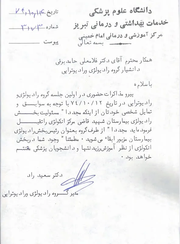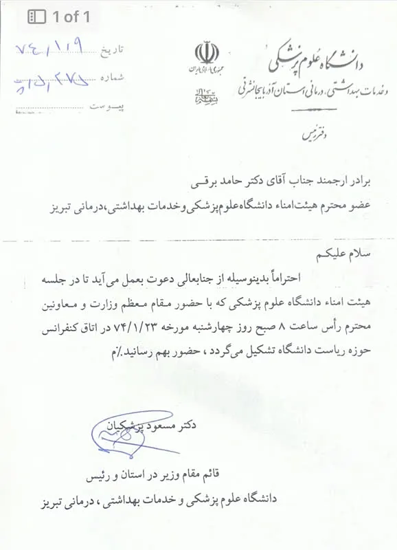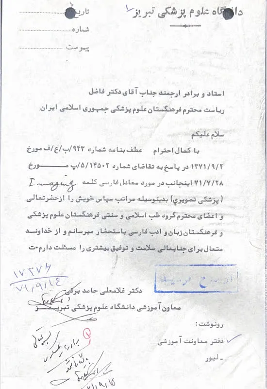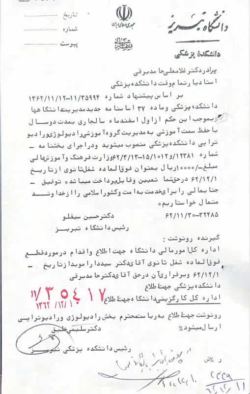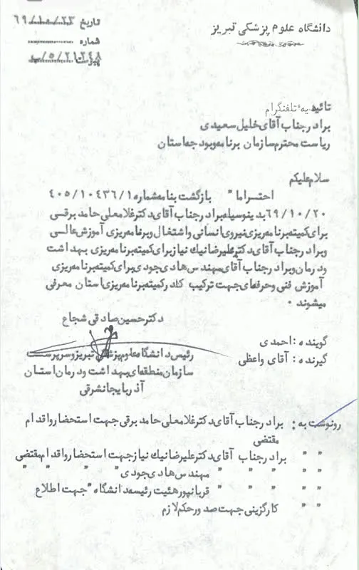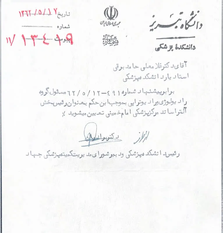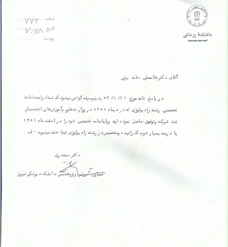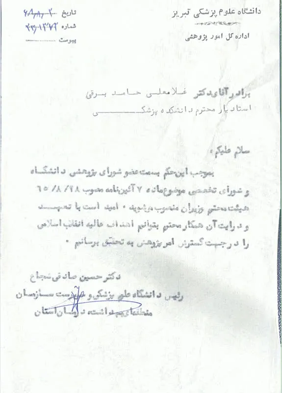 اسناد علمی آقای دکتر غلامعلی حامد برقی در موزه دانشگاه علوم پزشکی تبریز