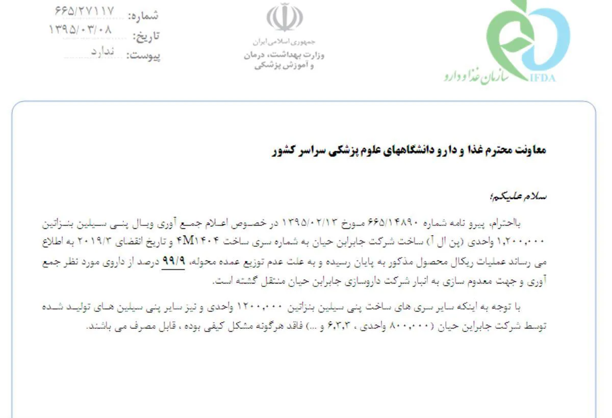 پایان ریکال ویال پنی سیلین